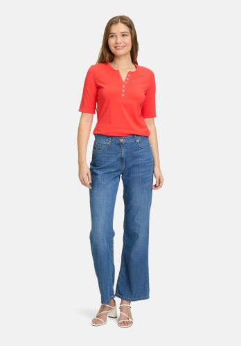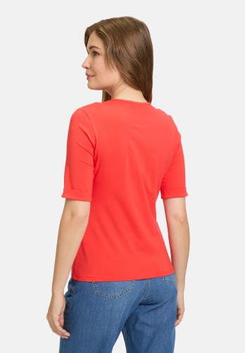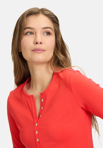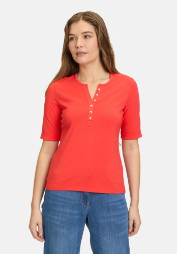 Слегка приталенная базовая рубашка с короткими рукавами и круглым вырезом впечатляет своим простым однотонным дизайном. Планка с пуговицами добавляет дополнительный акцент и придаёт рубашке современный вид. Облегающий крой выгодно подчеркивает фигуру и делает её идеальным повседневным предметом гардероба, который можно комбинировать с различными образами.