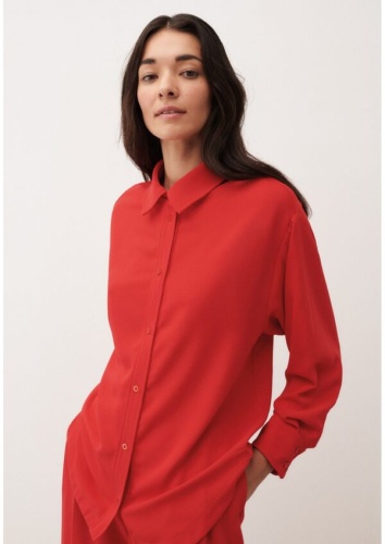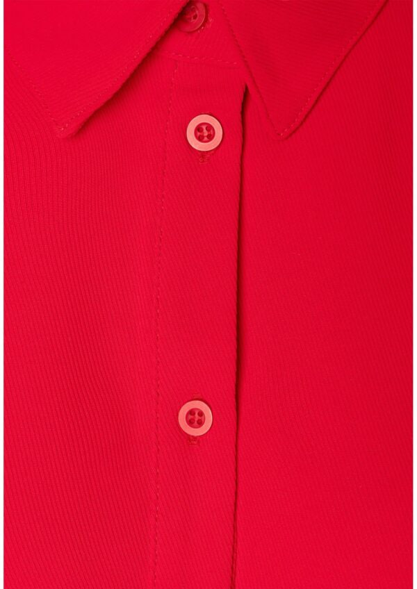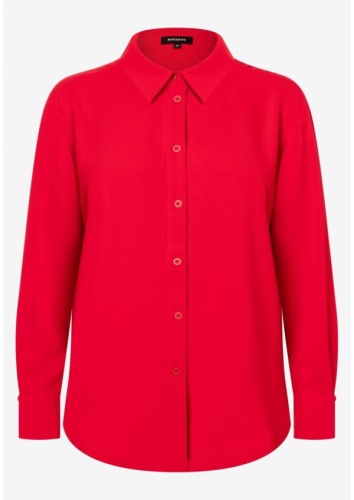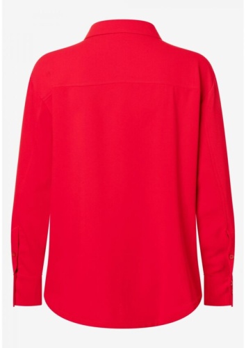 Длинная блузка красного цвета создаст современный деловой образ с подходящими широкими брюками, а также ее можно носить нараспашку в качестве замены пиджаку.