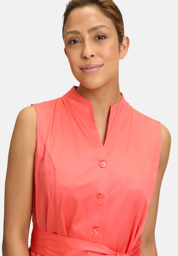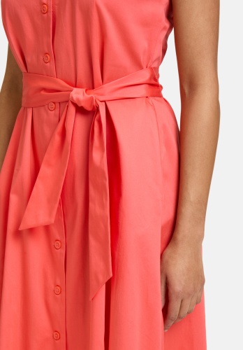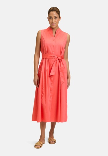 Это расклешённое платье-рубашка без рукавов воплощает простоту и элегантность, а также универсальность. Планка на пуговицах и пояс-завязка подчёркивают классический образ, а прорезные карманы добавляют непринуждённости. Идеально для отдыха и тёплых дней!